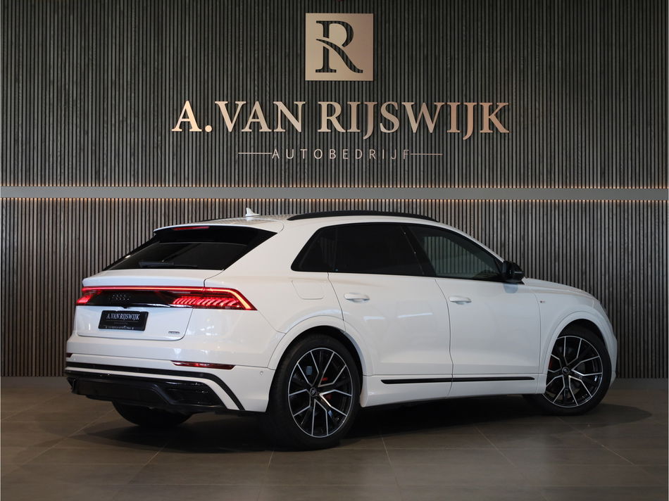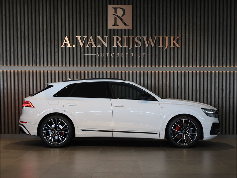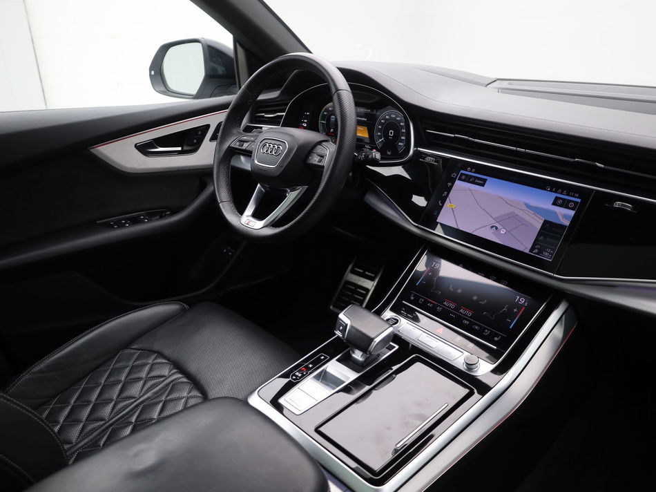 Laat u niets wijsmaken, deze Audi Q8 biedt alles wat u van een auto verlangt. Lekker sportief en een tikkie stoer: de S-Line styling geeft een hele dynamische uitstraling. Deze hybride auto heeft een sterke, zuinige elektromotor én een verbrandingsmotor. Kortom: uitstekende rijprestaties en een veel lager brandstofgebruik. Het met leer beklede interieur is comfortabel en stijlvol. Een weldaad voor uw rug en die van uw bijrijder: deze Audi Q8 heeft verwarmbare voorstoelen met massagefunctie. U blijft ook in de scherpe bochten goed ondersteund door de fraaie sportstoelen. Het daglicht valt in overvloed via het elektrisch bediende panoramadak op het fraaie interieur. Een handige voorziening op deze auto is de elektrische achterklep die u op afstand kunt openen. Opvallend is de geavanceerde matrix LED-verlichting met daglichtkwaliteit. De koplampen dimmen automatisch het deel van de lichtstraal waar voor- of tegenliggers in rijden. De overige segmenten blijven aan en verlichten de weg maximaal. In deze auto profiteert u onder andere ook van: 22 inch lichtmetalen velgen, adaptief dempingsysteem, warmtewerend glas, zwarte hemelbekleding, LED-achterlichten en verstelbare lendensteunen.