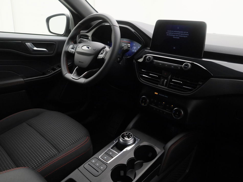 Praktisch, helder en uitermate handig is het digitale dashboard. Alle functies haarscherp in beeld! Hoeveel ruimte heeft u nog bij het inparkeren? De achteruitrijcamera brengt helder in beeld wat zich achter de auto bevindt en geeft een geluidssignaal. Spraaksturing betekent dat u verschillende functies met uw stem kunt bedienen. De kortste weg, de zuinigste weg, de snelste weg... elke weg is te vinden met het full map navigatiesysteem. De achteropkomend verkeer waarschuwing bewaakt de afstand tot achterliggers en geeft een signaal als er te weinig ruimte is. Ook is de Ford uitgerust met: automatische airconditioning, DAB ontvangst, regensensor, cruise control, sportstuurwiel en keyless entry.