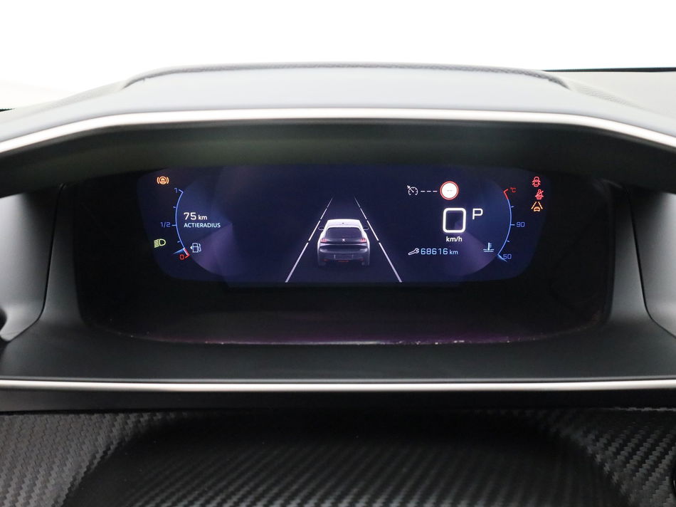 Voor een goed en duidelijk overzicht onderweg is het digitale dashboard uitermate slim ingedeeld. De achteruitrijcamera brengt precies in zicht wat zich achter u bevindt en toont een glashelder beeld op hoge resolutie. Een geluidssignaal waarschuwt hoeveel ruimte u nog heeft. Met spraakbediening of de knoppen op het stuur regelt u het audiosysteem en het full map navigatiesysteem, terwijl u uw blik op de weg gericht houdt. De audio-installatie biedt daarbij glasheldere ontvangst dankzij DAB-ontvangst. Tot de standaard uitrusting van deze auto hoort ook automatische airconditioning. Natuurlijk is een complete auto als deze ook voorzien van sensoren die de omgeving in de gaten houden. Deze Peugeot heeft niet alleen een automatisch inschakelbare verlichting aan boord, maar ook een regensensor. Extra opties op deze auto zijn: cruise control, automatisch dimmende binnenspiegel, lederen stuur en centrale deurvergrendeling met afstandsbediening.
