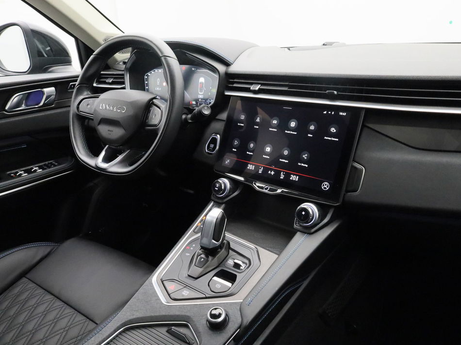 Modern design en bijzondere techniek bepalen de kwaliteiten van de hybride Lynk & Co 01. Deze auto is uit 2023, hij heeft 65439 kilometer gelopen. Onder de motorkap een elektromotor en een verbrandingsmotor. Veel duurzame kilometers dus! Binnenin zien we een fraai afgewerkt lederen interieur. Behaaglijk onderweg zijn? Als bestuurder geniet u van de verwarmbare voorstoelen. Net als uw bijrijder! De achterklep opent automatisch met een druk op de knop. Handig als u met volle handen staat. Het glazen panoramadak laat u genieten van een wijds uitzicht en meer lichtinval. Tot de voorzieningen van deze auto behoren 20 inch lichtmetalen velgen, LED koplampen, dakspoiler, in delen neerklapbare achterbank, LED-achterlichten en verstelbare lendensteunen.