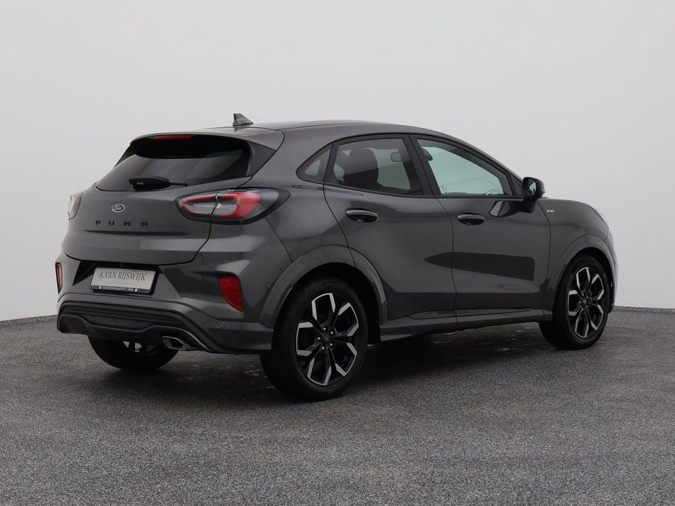 Van autorijden mag u best genieten. En dat gaat u ook, achter het stuur van deze Ford Puma, want dankzij de hoogwaardige technologie die in deze auto is verwerkt, is iedere kilometer een klein feestje. Het motorvermogen en de uitgebalanceerde wegligging zorgen dat u altijd in controle bent. De aandrijving komt voor rekening van een benzinemotor en een automatische transmissie. De sportstoelen zorgen ervoor dat u goed en comfortabel zit, ook als het gas erop gaat. Ook is de auto voorzien van: 18 inch lichtmetalen velgen, LED koplampen, sportonderstel, halflederen bekleding, geluidsisolerende ramen en in delen neerklapbare achterbank.