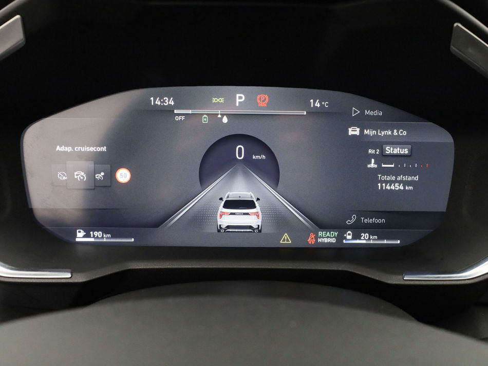Omdat goed geïnformeerd rijden tegenwoordig om veel meer draait dan alleen snelheid en brandstofpeil, laat het digitale dashboard alle functies zien die u nodig heeft. De 360 graden camera op deze auto wordt verzorgd door vier geavanceerde camera's. Het biedt garantie van uitstekende beeldkwaliteit. Met adaptive cruise control houdt de auto zelfstandig afstand tot uw voorligger. Een veiligheidsverhogende optie waarmee u comfortabel onderweg bent. Rijden-stilstaan, rijden-stilstaan. Niks is irritanter en vermoeiender dan filerijden. Daar heeft deze Lynk & Co 01 een oplossing voor: de file assistent, die met radarmeting permanent het tempo aanpast op de voorligger. Zelfs als die stopt. Spraaksturing is onderdeel van de uitrusting van deze auto. Met uw stem kunt u de belangrijkste voertuigfuncties bedienen. Ook full map navigatiesysteem, achteropkomend verkeer waarschuwing, automatische airconditioning, draadloos opladen, DAB ontvangst en regensensor zijn aan boord.