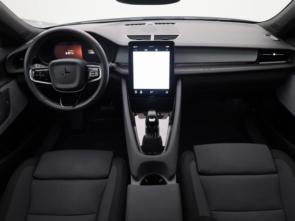 Een grote achterklep geeft toegang tot de riante bagageruimte. Het interieur biedt volop ruimte voor u en uw gezin en de pittige motor staat garant voor uitstekende prestaties. De fluisterstille elektromotor zorgt voor pittige rijprestaties zonder uitstoot. Maar wel met fiscaal voordeel! Een krachtige motor geeft deze auto zijn sportieve prestaties. Een beetje luxe is nooit weg, toch? Vandaar de stoelverwarming! Met een druk op de knop gaat de elektrische achterklep open. Onderweg heeft u extra veel te zien dankzij het glazen panoramadak. Waarom zou je alleen voorin behaaglijk mogen zitten? Daarom is er óók een verwarmde achterbank. Verder is de Polestar uitgerust met: 19 inch lichtmetalen velgen, LED koplampen, zwarte hemelbekleding, donker getint glas achter, in delen neerklapbare achterbank en LED-achterlichten.
