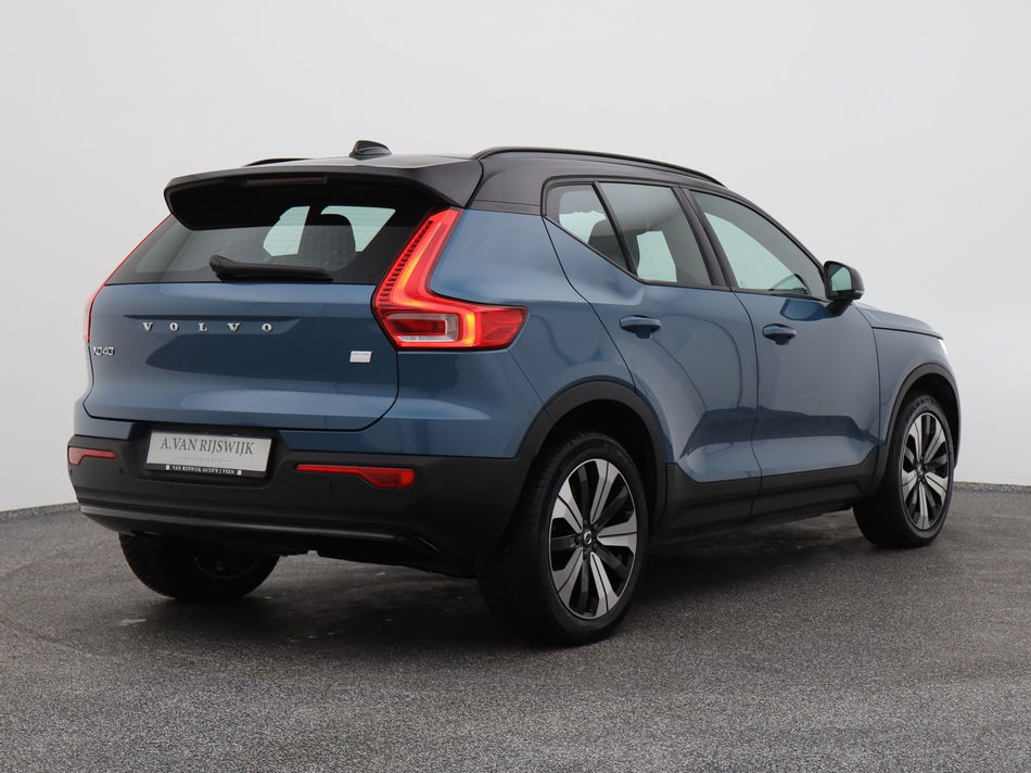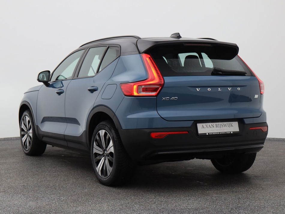 Geen verbrandingsmotor. Geen motorgeluid. Luister naar de stilte van elektrisch rijden in deze Volvo XC40. Met de elektromotor zoeft u fluisterzacht over de weg. De krachtige motor geeft deze Volvo uitstekende prestaties. Onderweg zorgen de comfortstoelen voor een ontspannen rit. Tot de voorzieningen van deze auto behoren 19 inch lichtmetalen velgen, LED koplampen, zwarte hemelbekleding, in delen neerklapbare achterbank, LED-achterlichten en verstelbare lendensteunen.