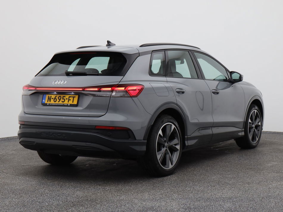 Geavanceerde technologie verpakt in aantrekkelijk design. Met deze Audi Q4 e-tron rijdt u elektrisch in stijl. Een elektrische auto is echt niet meer alleen voor korte ritjes. Het rijbereik van deze auto biedt voldoende ruimte voor uw dagelijkse ritten. Daardoor kan het opladen vaak 's nachts gebeuren. De krachtige motor geeft deze Audi uitstekende prestaties. De verwarmbare voorstoelen zijn een weldaad voor rug en schouders. Zijwaartse g-krachten worden solide opgevangen door de sportstoelen. De elektrische achterklep opent met een druk op de knop, zodat u gemakkelijk toegang heeft tot de bagageruimte. Daglicht bij nacht? De koplampen met matrix LED-verlichting zorgen ervoor. Ook 20 inch lichtmetalen velgen, zwarte hemelbekleding, neerklapbare achterbank, LED-achterlichten en verstelbare lendensteunen zijn aan boord.