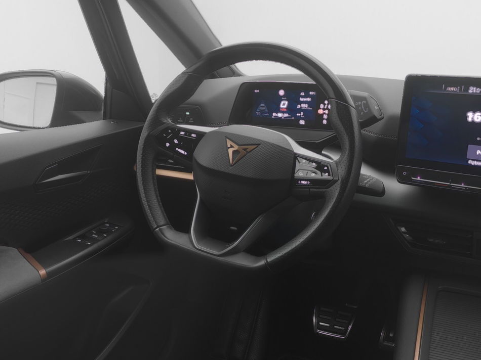 Deze CUPRA Born is innovatie op zijn best. Hij is ontworpen als een unieke combinatie van rijplezier en zorg voor het milieu. U zult verrast zijn door de power van de elektromotor. En stil! De krachtige motor geeft deze CUPRA uitstekende prestaties. Scherpe bochten, pittige acceleraties? In de sportstoelen blijft u altijd in positie. Ook 18 inch lichtmetalen velgen, Full LED koplampen, sportonderstel, zwarte hemelbekleding, donker getint glas achter en in delen neerklapbare achterbank horen tot de voorzieningen op deze auto.