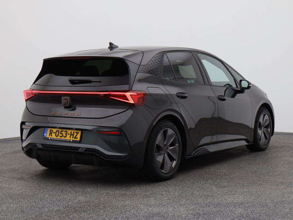 Een auto is niet zomaar een vervoermiddel. Deze CUPRA Born bijvoorbeeld, onderscheidt zich door zijn krachtige design. Geavanceerde ondersteltechniek geef hem uitstekende rijeigenschappen en maakt elke rit tot een genoegen. De fluisterstille elektromotor zorgt voor een serene rijervaring. De krachtige motor geeft deze CUPRA uitstekende prestaties. De sportstoelen houden u en uw bijrijder goed op z'n plek tijdens het accelereren en bij het nemen van scherpe bochten. Tot de uitrusting behoren ook 18 inch lichtmetalen velgen, Full LED koplampen, sportonderstel, zwarte hemelbekleding, donker getint glas achter en in delen neerklapbare achterbank.