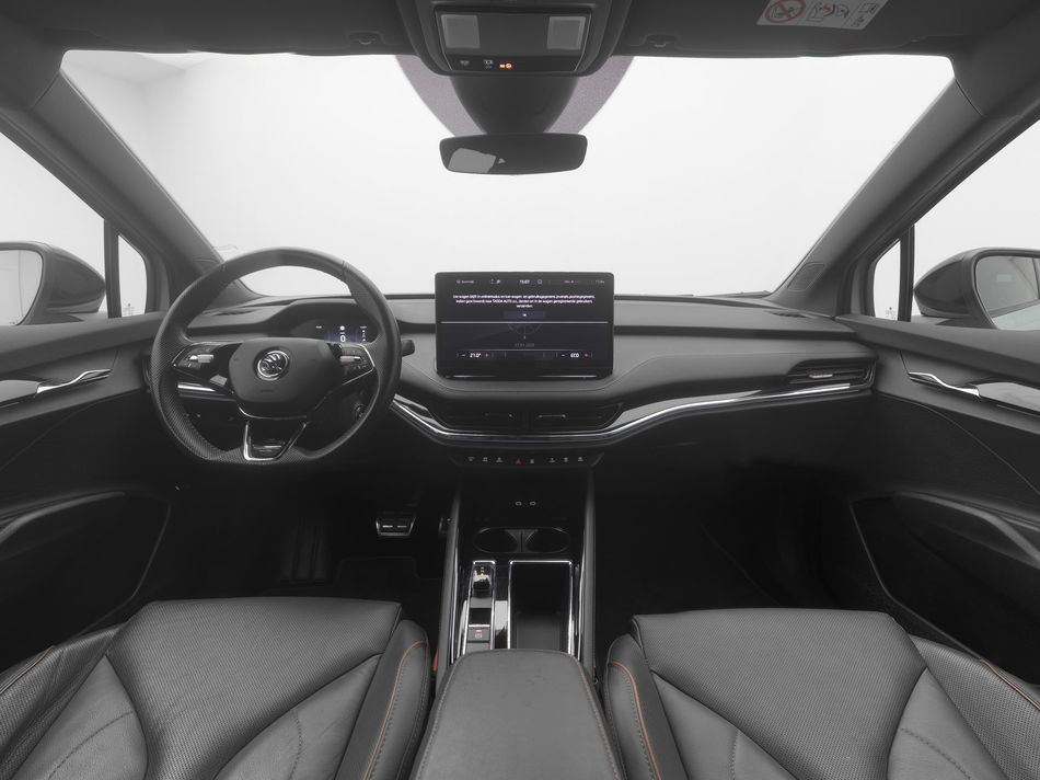 Zodra u naar de 'R' schakelt, gaat de achteruitrijcamera in werking en heeft u een perfect zicht op alles wat zich achter de auto afspeelt. Electronic climate control verwarmt of koelt het interieur met een druk op de knop. Natuurlijk is een complete auto als deze ook voorzien van sensoren die de omgeving in de gaten houden. Deze ŠKODA heeft niet alleen een automatisch inschakelbare verlichting aan boord, maar ook een regensensor. Cruise control is aanwezig; prettig voor de lange einden. Een prettige optie is de keyless entry, die ervoor zorgt dat de ŠKODA Enyaq iV automatisch van het slot gaat als u dichtbij komt. Deze auto is voorzien van dashboard met spraakbediening, full map navigatiesysteem, schakelpaddles aan het stuur, DAB ontvangst, automatisch dimmende binnenspiegel en centrale deurvergrendeling met afstandsbediening.
