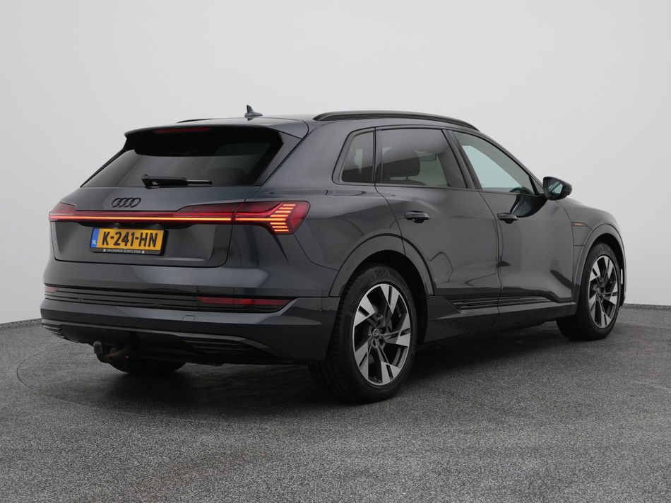 Het maakt niet uit of u binnen of buiten de stad rijdt. Het rijbereik van deze elektrische Audi e-tron biedt u alle vrijheid om te gaan en te staan waar u wilt. De prestaties van de elektromotor kunnen de vergelijking met een brandstofmotor moeiteloos aan. Een krachtige motor geeft deze auto zijn sportieve prestaties. Van binnen lijkt het allemaal uitermate ruim dankzij de vrije inval van daglicht via het elektrisch bediende glazen panorama dak. Comfort en luxe? Dat krijgt u door het lederen interieur. En optimaal gemak is er in de vorm van de elektrisch bedienbare achterklep. Donkere en koude maanden? U zit altijd goed dankzij de stoelverwarming. Ook op de minder vlakke wegen zoeft u lekker door dankzij de luchtvering. Bij de uitrusting van deze Audi horen onder meer 20 inch lichtmetalen velgen, LED koplampen, adaptief dempingsysteem, warmtewerend glas, in delen neerklapbare achterbank en LED-achterlichten.
