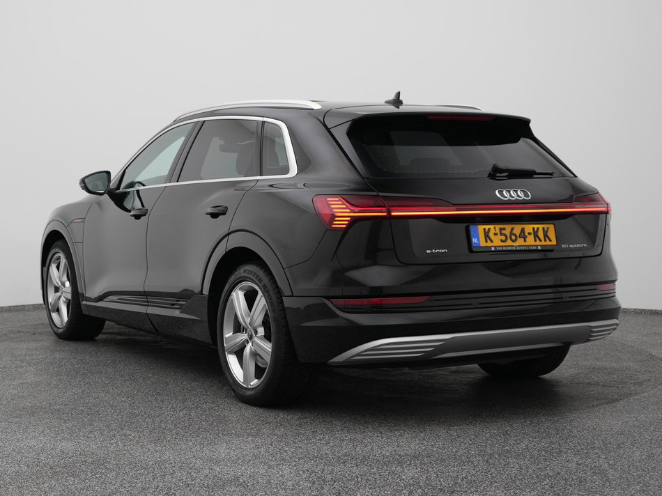 Iedere rit in een elektrische auto is een weldaad: u rijdt ontspannen en in alle rust, er is volop vermogen en u komt verkwikt op uw bestemming aan. Deze Audi e-tron uit 2020 heeft 95168 kilometer op de teller staan. Met de combinatie van elektrische aandrijving en automatische transmissie manoeuvreert u soepel door het verkeer. Een krachtige motor geeft deze auto zijn sportieve prestaties. Iedere oneffenheid in de weg wordt geëlimineerd door de uitstekende luchtvering. Altijd al een voorkeur voor een lederen interieur gehad? Deze Audi e-tron heeft het! Ga samen met uw bijrijder lekker zitten in de verwarmbare voorstoelen. Het elektrisch bediende panoramadak zorgt voor maximale lichtinval en frisse lucht in het interieur. Een praktische extra is de elektrisch bedienbare achterklep die opent en sluit met een druk op de knop. Verder is de Audi uitgerust met: 20 inch lichtmetalen velgen, LED koplampen, adaptief dempingsysteem, warmtewerend glas, in delen neerklapbare achterbank en LED-achterlichten.
