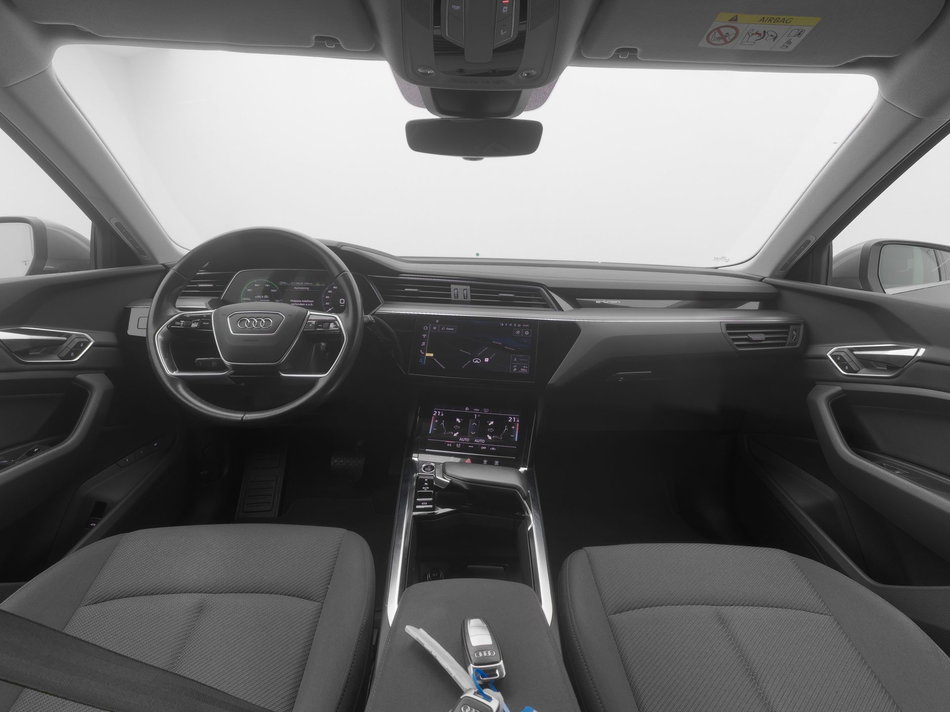 Hij biedt volop ruimte, deze Audi e-tron, en dankzij zijn elektrische aandrijving is er ook plenty vermogen voor een dynamische rijstijl. Gas geven is er met de elektromotor niet meer bij. Stil snelheid maken wel! Een krachtige motor geeft deze auto zijn sportieve prestaties. De luchtvering maakt van deze auto een klasseauto. Voelbaar, merkbaar beter. Met een druk op de knop gaat de elektrische achterklep open. Bij de uitrusting van deze Audi horen onder meer elektrisch verstelbare passagiersstoel, 20 inch lichtmetalen velgen, LED koplampen, adaptief dempingsysteem, warmtewerend glas en in delen neerklapbare achterbank.
