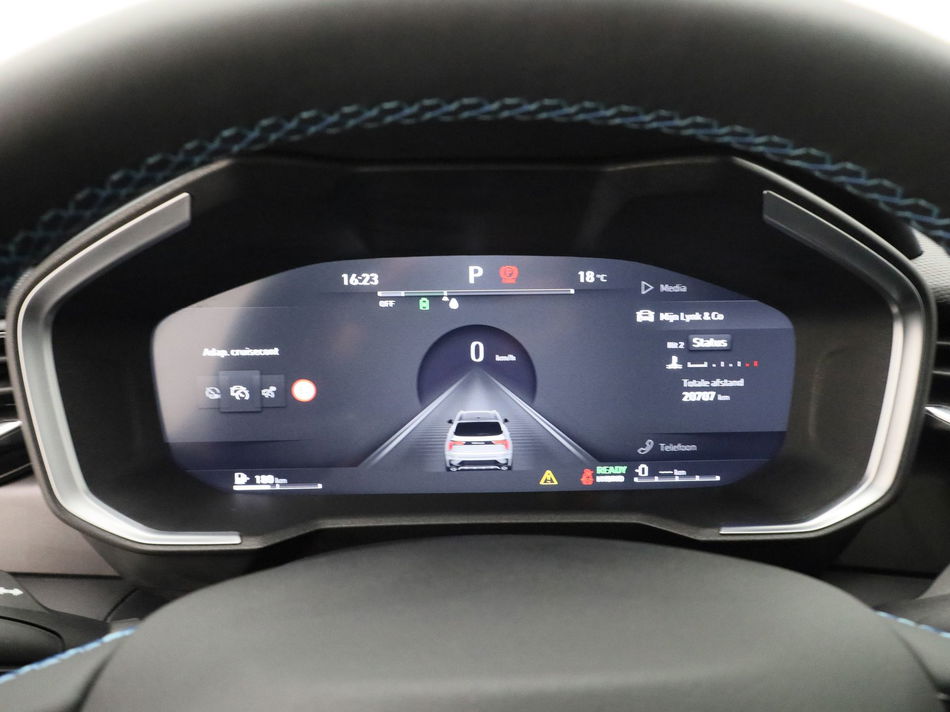 Deze auto is voorzien van een digitaal dashboard waarmee u de cockpit-interface kunt personaliseren. De 360 graden camera op deze auto biedt u een volledig, panoramisch zicht op de omgeving. Met adaptive cruise control houdt de auto zelfstandig afstand tot uw voorligger. Een veiligheidsverhogende optie waarmee u comfortabel onderweg bent. De file assistent verzacht het fileleed door automatisch veilig afstand te houden tot de voorligger en zo nodig zelfs te stoppen als de rij tot stilstand komt. Deze Lynk & Co is voorzien van spraakbediening voor het full map navigatiesysteem en voor het audio-installatiesysteem met DAB-ontvangst. Maar u kunt ook de knoppen op het stuur gebruiken. De uitrusting van deze Lynk & Co is met achteropkomend verkeer waarschuwing, automatische airconditioning, draadloos opladen, regensensor, keyless entry en automatisch dimmende binnenspiegel behoorlijk compleet.