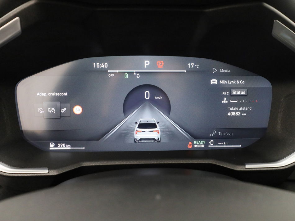 Het digitale dashboard geeft alle up-to-date info en functies voor een slimme en veilige rit. De kracht van de 360 graden camera op deze auto resulteert in optimale zichtbaarheid en veiligheid. Als u de adaptive cruise control inschakelt, regelt de auto zelf de snelheid en de afstand tot de auto voor u. Filerijden zal nooit een pretje worden. Maar met de file assistent wordt het wél relaxter. Deze geavanceerde optie zorgt dat u automatisch de juiste afstand tot de voorligger houdt en remt bovendien als de rij tot stilstand komt. Laat u onderweg niet afleiden, de bediening van het audio-installatiesysteem en ook het full map navigatiesysteem gaat met knoppen op het stuur en met spraak. Natuurlijk is de audio-installatie voorzien van DAB-ontvangst. De uitrusting van deze Lynk & Co is met achteropkomend verkeer waarschuwing, automatische airconditioning, draadloos opladen, regensensor, keyless entry en automatisch dimmende binnenspiegel behoorlijk compleet.