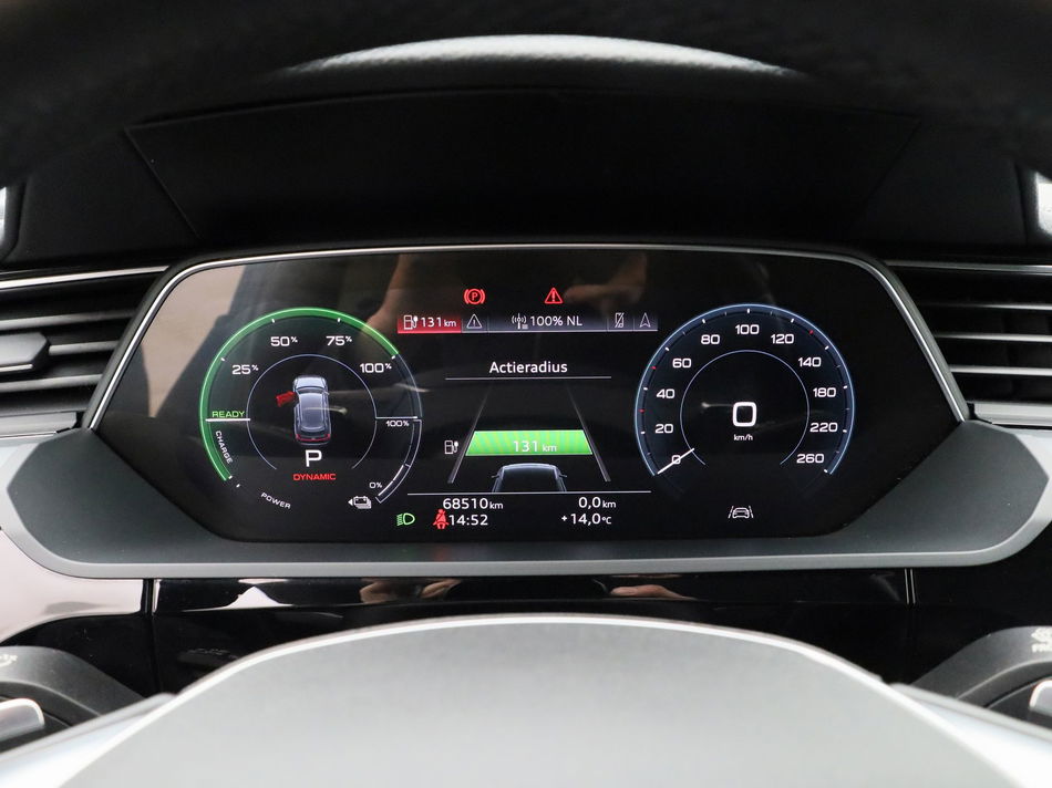 Zoals u mag verwachten van deze Audi e-tron is hij uitgerust met een reeks aan actieve veiligheidssystemen. Het Lane-keeping systeem zorgt dat u mooi binnen de lijntjes blijft. Ongemerkt buiten de rijstrook komen is er niet meer bij. Het risico van een kop-staartbotsing wordt aanzienlijk verminderd door de forward collision warning. In deze Audi vinden we verder een brake assist en bandenspanningcontrolesysteem.