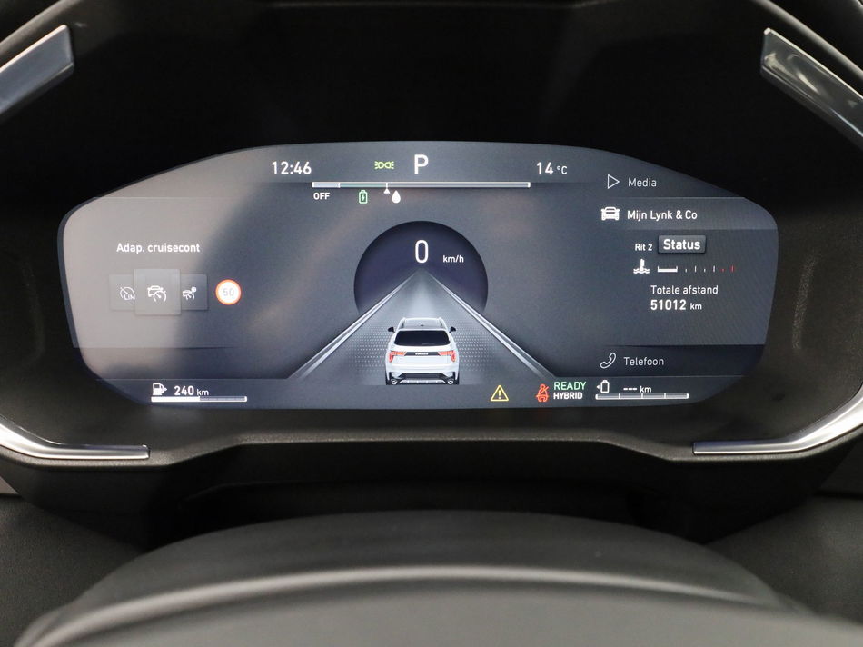 Dankzij het digitale dashboard leest u alle benodigde info gemakkelijk en overzichtelijk af. Met adaptive cruise control houdt deze auto automatisch afstand tot uw voorligger. De aanwezige file assistent meet de afstand tot uw voorligger en zorgt voor een veilige afstand. Staat het voor u opeens stil? Dan zorgt het systeem dat de auto ook stopt. Een optie die de veiligheid verhoogt, is de bediening vanaf het stuur van het audio-installatiesysteem (met DAB-radio!) en het full map navigatiesysteem. Als u wilt kunt u beiden zelfs met uw stem bedienen. Telefoon onderweg aan de lader? Daar komt geen kabeltje aan te pas, want deze Lynk & Co 01 is voorzien van een draadloze oplaadmogelijkheid voor telefoons. Ook achteropkomend verkeer waarschuwing, automatische airconditioning, parkeersensoren achter, regensensor, keyless entry en automatisch dimmende binnenspiegel horen tot de voorzieningen op deze auto.