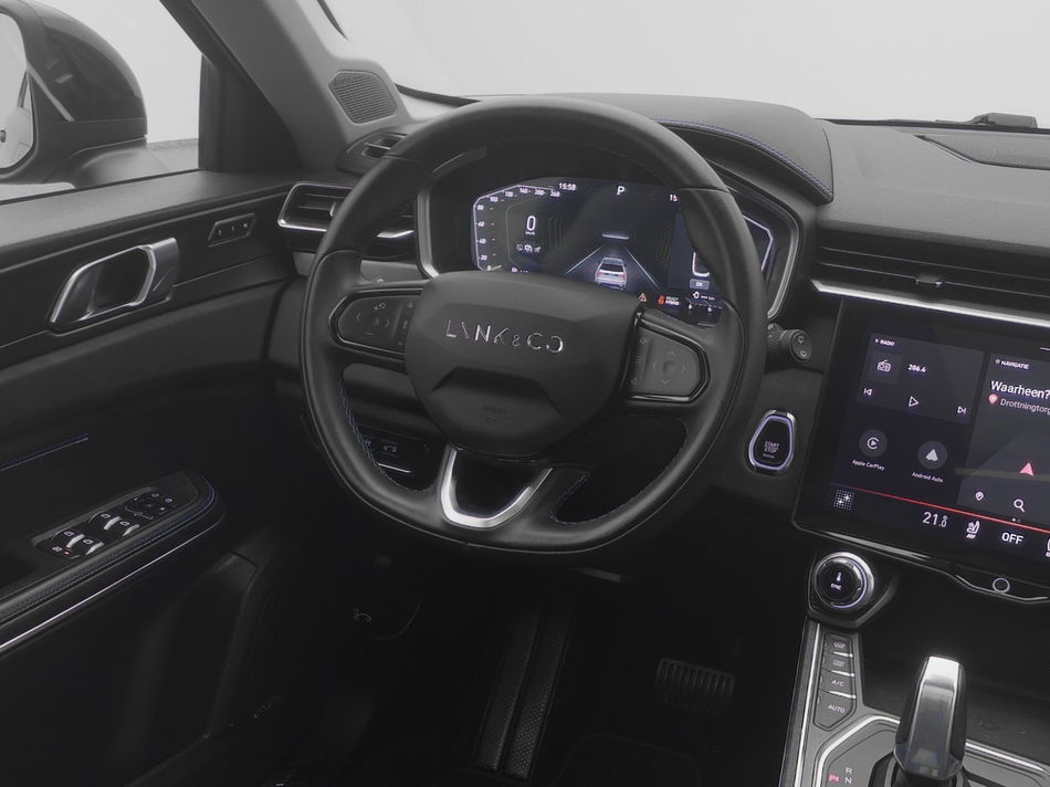 Aan boord van deze Lynk & Co houden verschillende geavanceerde systemen voor u de weg in de gaten. Ze waarschuwen u voor noodsituaties en kunnen in een aantal gevallen ook zelf ingrijpen. Onderweg zorgt verkeersborddetectie ervoor dat u geen waarschuwingsbord mist. Het Lane-keeping systeem doet precies wat nodig is: waarschuwen en corrigeren bij onbedoelde overschrijding van de rijstrooklijnen. Onbedoeld bumperkleven is er niet bij, dankzij de forward collision warning. Die waarschuwt direct als een botsrisico met uw voorligger dreigt. Bovenop deze veiligheidsfeatures heeft deze Lynk & Co bovendien dodehoekdetectie, hill hold functie, brake assist en vermoeidheidsherkenning.