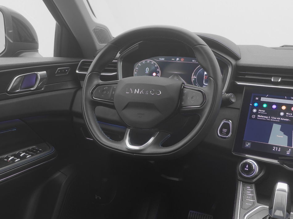 Altijd de benodigde functies in beeld? Het digitale dashboard zorgt ervoor. De 360 graden camera biedt een beter zicht bij slechte weersomstandigheden, waardoor u beter kan anticiperen op mogelijke gevaren. Adaptive cruise control is een comfortabele en veilige optie. Het systeem reguleert de snelheid en houdt automatisch afstand tot uw voorligger. Loopt het verkeer onderweg vast, schakel dan de file assistent in en laat het systeem zorgen voor de juiste afstand bij stilstaan en rijden. Deze Lynk & Co is voorzien van spraakbediening voor het full map navigatiesysteem en voor het audio-installatiesysteem met DAB-ontvangst. Maar u kunt ook de knoppen op het stuur gebruiken. Deze Lynk & Co is voorzien van achteropkomend verkeer waarschuwing, automatische airconditioning, draadloos opladen, regensensor, keyless entry en automatisch dimmende binnenspiegel.