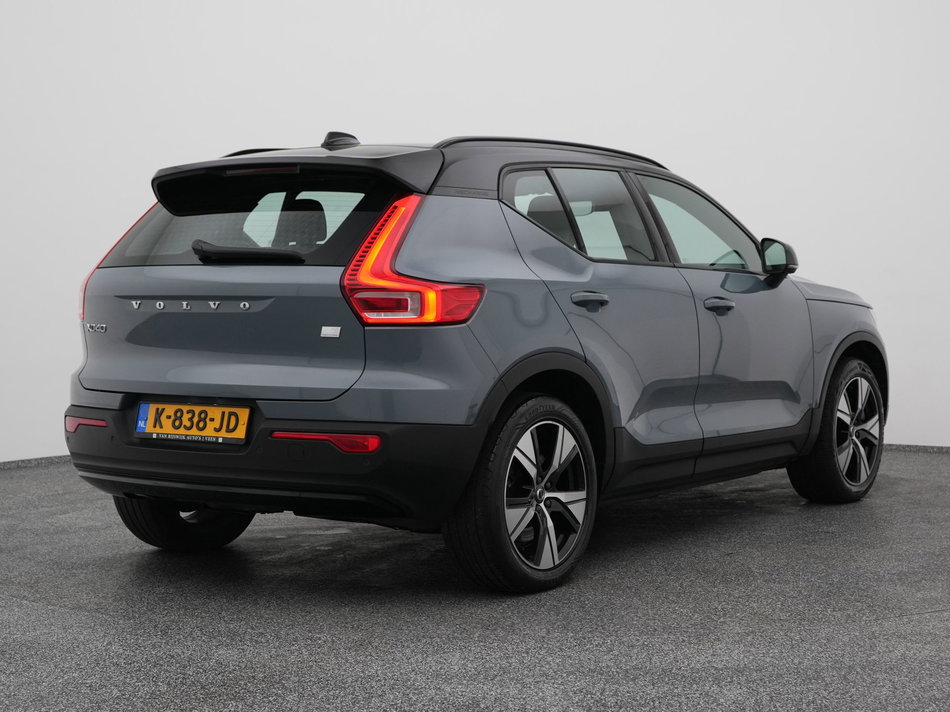 Iedere rit in een elektrische auto is een weldaad: u rijdt ontspannen en in alle rust, er is volop vermogen en u komt verkwikt op uw bestemming aan. De elektromotor laat u geluidloos over de weg gaan. Wat een verademing, en zoveel power ook nog! Een krachtige motor geeft deze auto zijn sportieve prestaties. 's Winters op pad gaan kan een behoorlijke uitdaging zijn. Daarom is deze Volvo XC40 voorzien van weldadige verwarmbare voorstoelen. Een praktische extra is de elektrisch bedienbare achterklep die opent en sluit met een druk op de knop. Verder is de Volvo uitgerust met: 19 inch lichtmetalen velgen, LED koplampen, sportonderstel, zwarte hemelbekleding, in delen neerklapbare achterbank en LED-achterlichten.