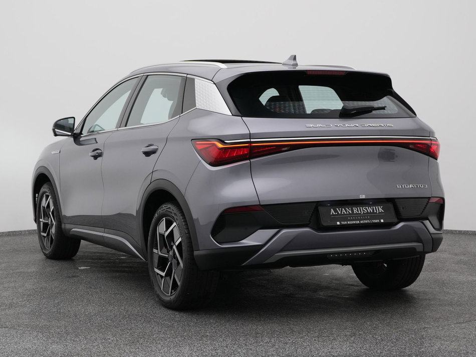 Duurzaam en dynamisch, de byd ATTO 3 verenigt deze twee uitersten in zich. Dit is een auto uit 2024, er staat 19 kilometer op de teller. Natuurlijk is de actieradius mede afhankelijk van de weersomstandigheden, maar een volle acculading is over het algemeen voldoende voor de gewone dagelijkse ritten. Het opladen kan gewoon 's nachts, terwijl u slaapt. Een krachtige motor geeft deze auto zijn sportieve prestaties. Een weldaad voor u en uw bijrijder: deze byd ATTO 3 heeft verwarmbare voorstoelen. Qua licht en ruimtelijk gevoel zit het helemaal goed met het elektrisch bediende panoramadak. Tot de voorzieningen van deze auto behoren 18 inch lichtmetalen velgen, LED koplampen, zwarte hemelbekleding, in delen neerklapbare achterbank, LED-achterlichten en snelheidsafhankelijke stuurbekrachtiging.