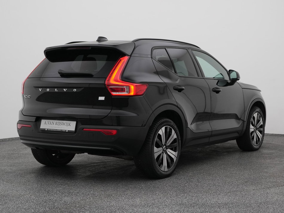 Kijk naar de geraffineerde lijnen. Verbaas u over de soepele aandrijftechniek. De elektrische Volvo XC40 trakteert u op een onvergelijkbare rijervaring. CO2-uitstoot? Met de elektromotor rijdt u stil en schoon! Een krachtige motor geeft deze auto zijn sportieve prestaties. Een ommetje of een lange trip? De comfortstoelen zorgen elke keer voor een goede zithouding! De elektrische achterklep opent met een druk op de knop, zodat u gemakkelijk toegang heeft tot de bagageruimte. Tot de uitrusting behoren ook 19 inch lichtmetalen velgen, LED koplampen, zwarte hemelbekleding, donker getint glas achter, in delen neerklapbare achterbank en LED-achterlichten.