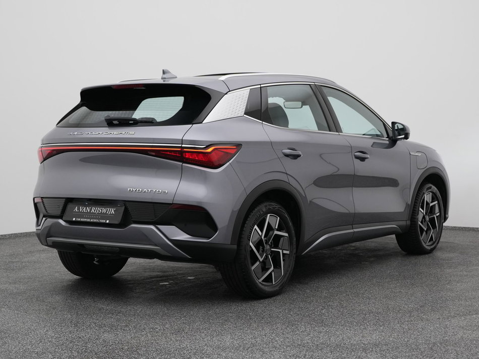 Tijdens de rit wordt u als bestuurder ondersteund door verschillende systemen die de weg en uw omgeving in de gaten houden. Bij de veiligheidssystemen van deze auto hoort ook de verkeersbord-detectie. Die leest tijdens het rijden als het ware met u mee en attendeert u op de significante verkeersborden langs en boven de weg. Deze byd ATTO 3 is ook behulpzaam als het gaat om een rechte koers. Het Lane-keeping systeem signaleert en corrigeert als u onbedoeld de rijstrooklijnen dreigt te overschrijden. Forward collision warning helpt u om kop-staart aanrijdingen te voorkomen. Dankzij veiligheidsvoorzieningen als dodehoekdetectie, hill hold functie, autonoom remsysteem en bandenspanningcontrolesysteem, bent u steeds veilig onderweg.